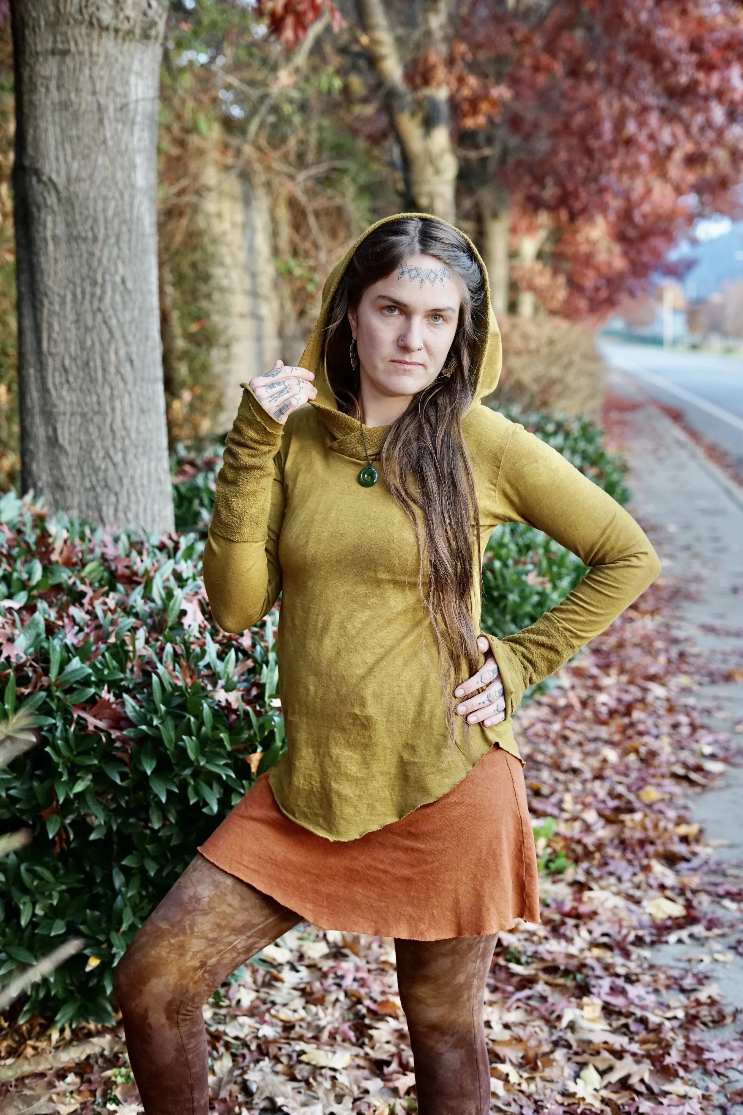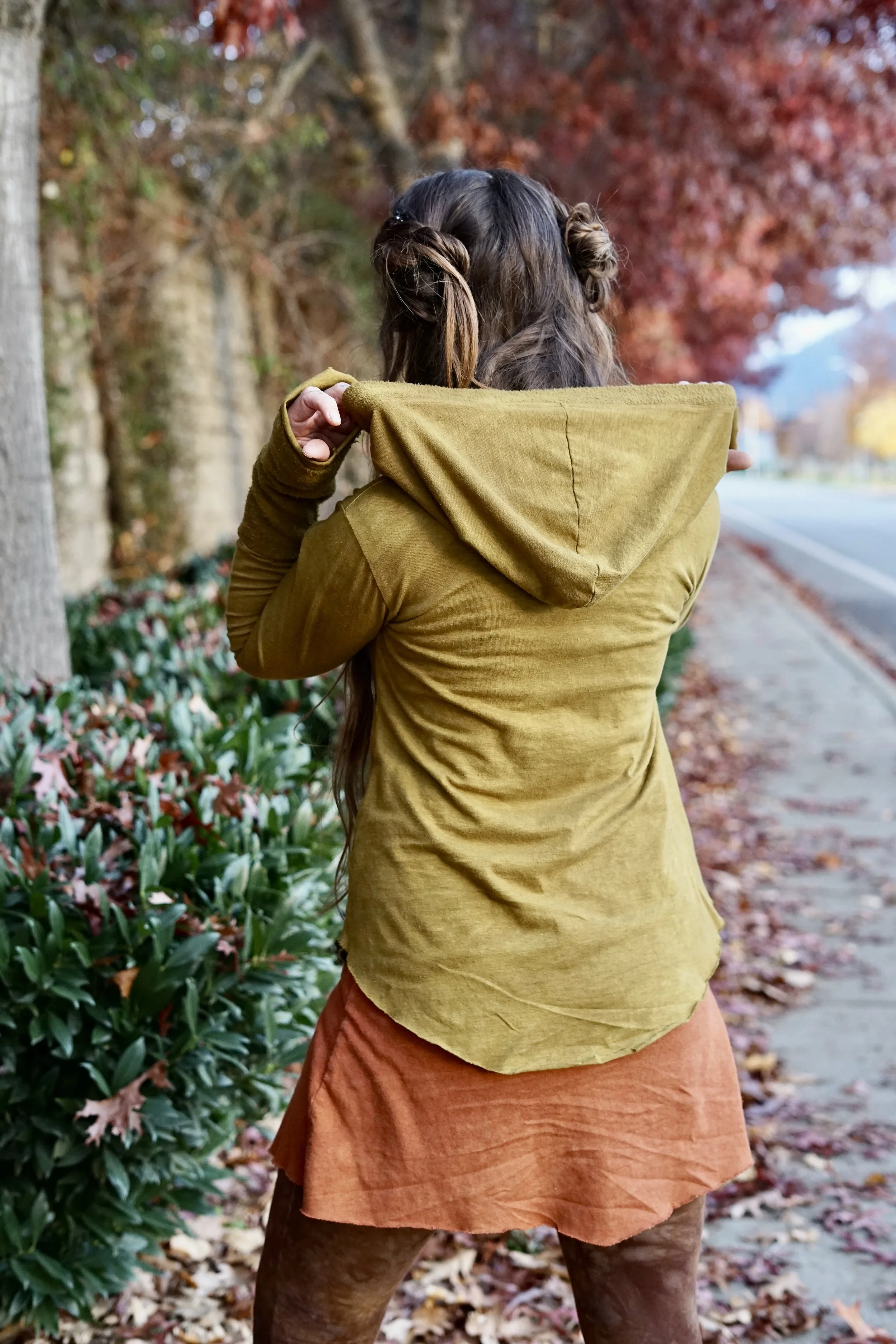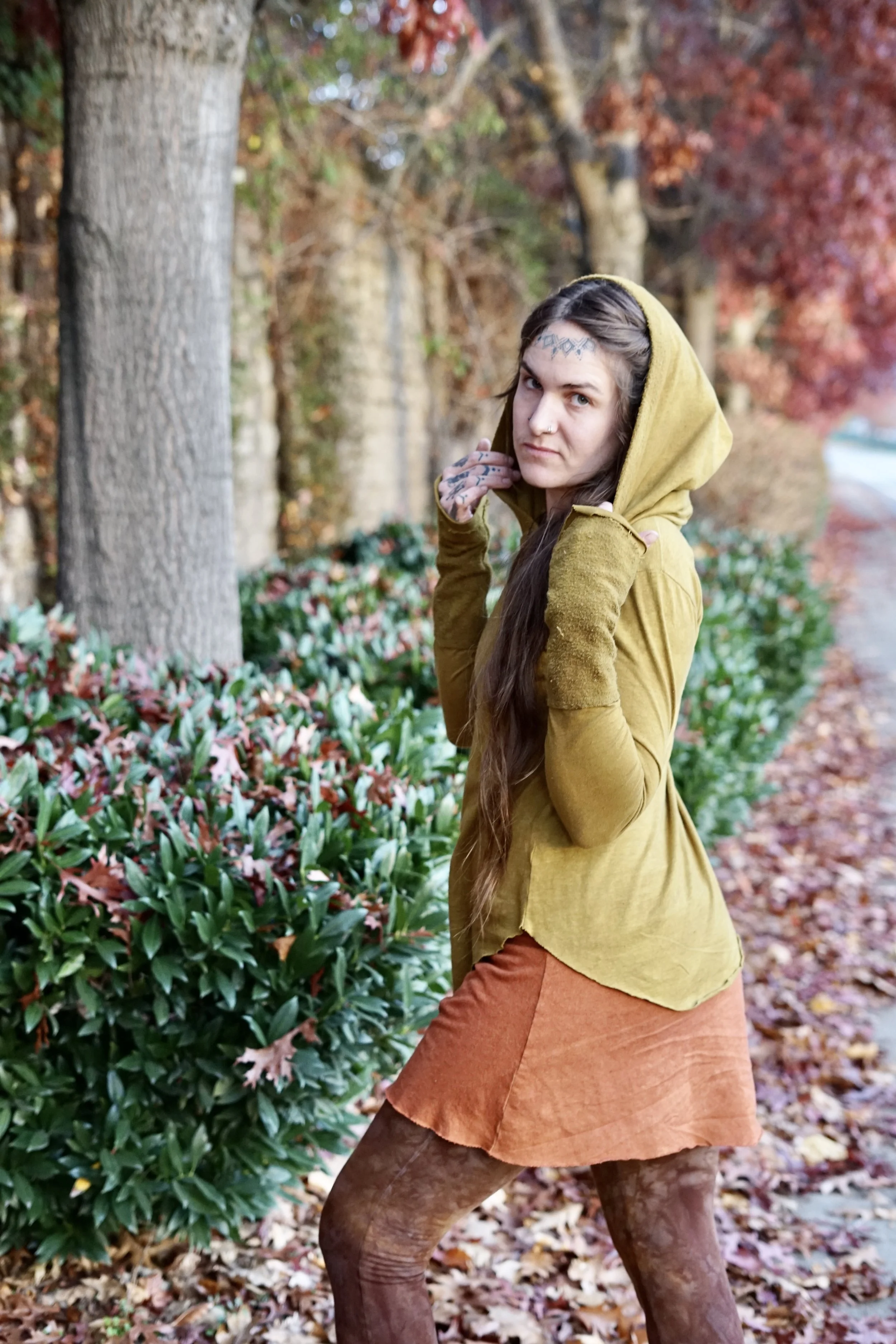This long sleeved Gaia top is made to be more of a basic pullover but still beautifully adorned with hemp fleece cuffs and trim around the hood. The rest of the shirt is made in HEMP THERMAL which is so soft and cozy on the skin. Perfect pullover & warmer layer when the weather is still chilly. Hand dyed, each one unique, in our mix of Procion hues. The Gaia long sleeved top is one of our winter favorites!