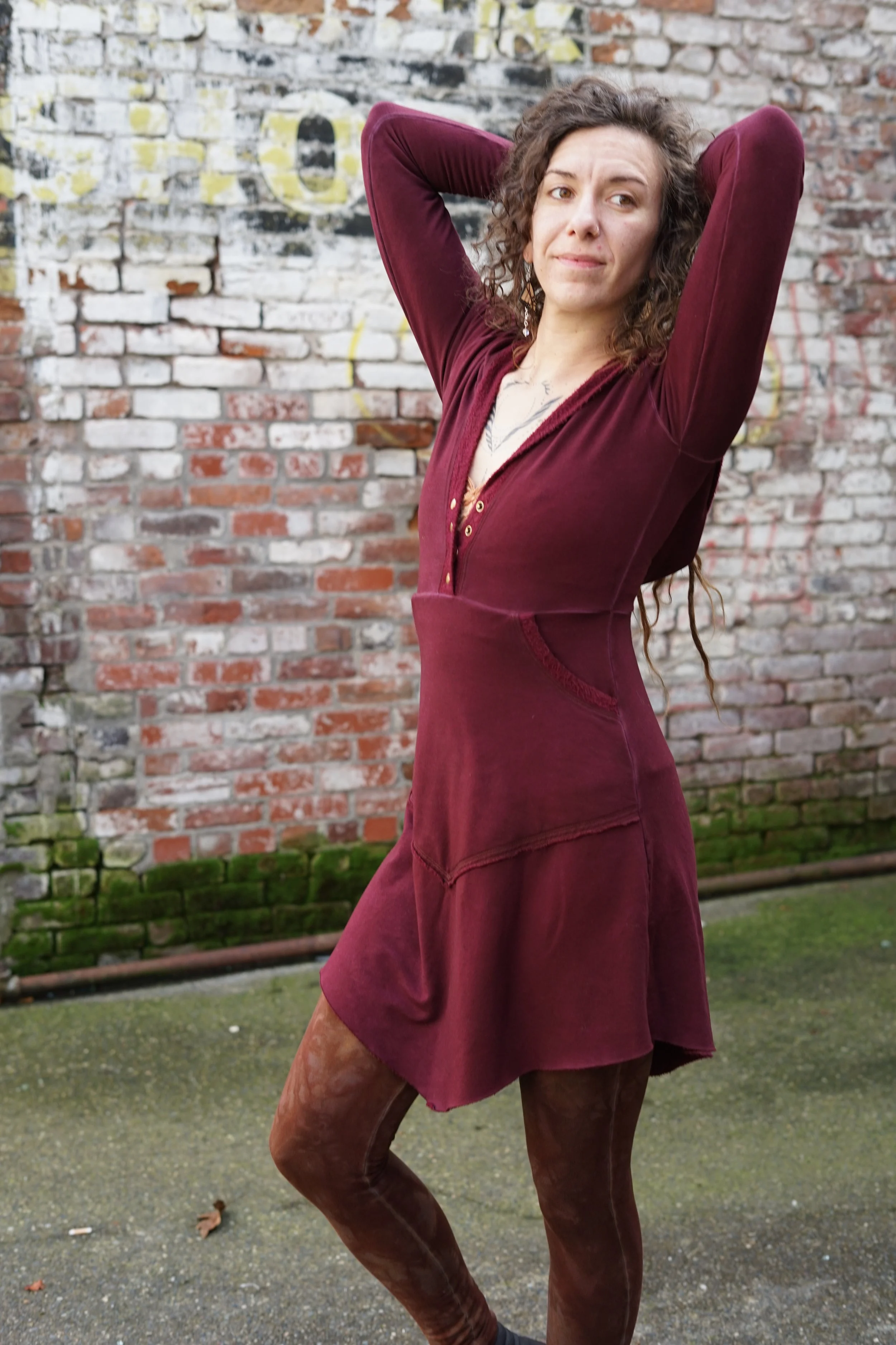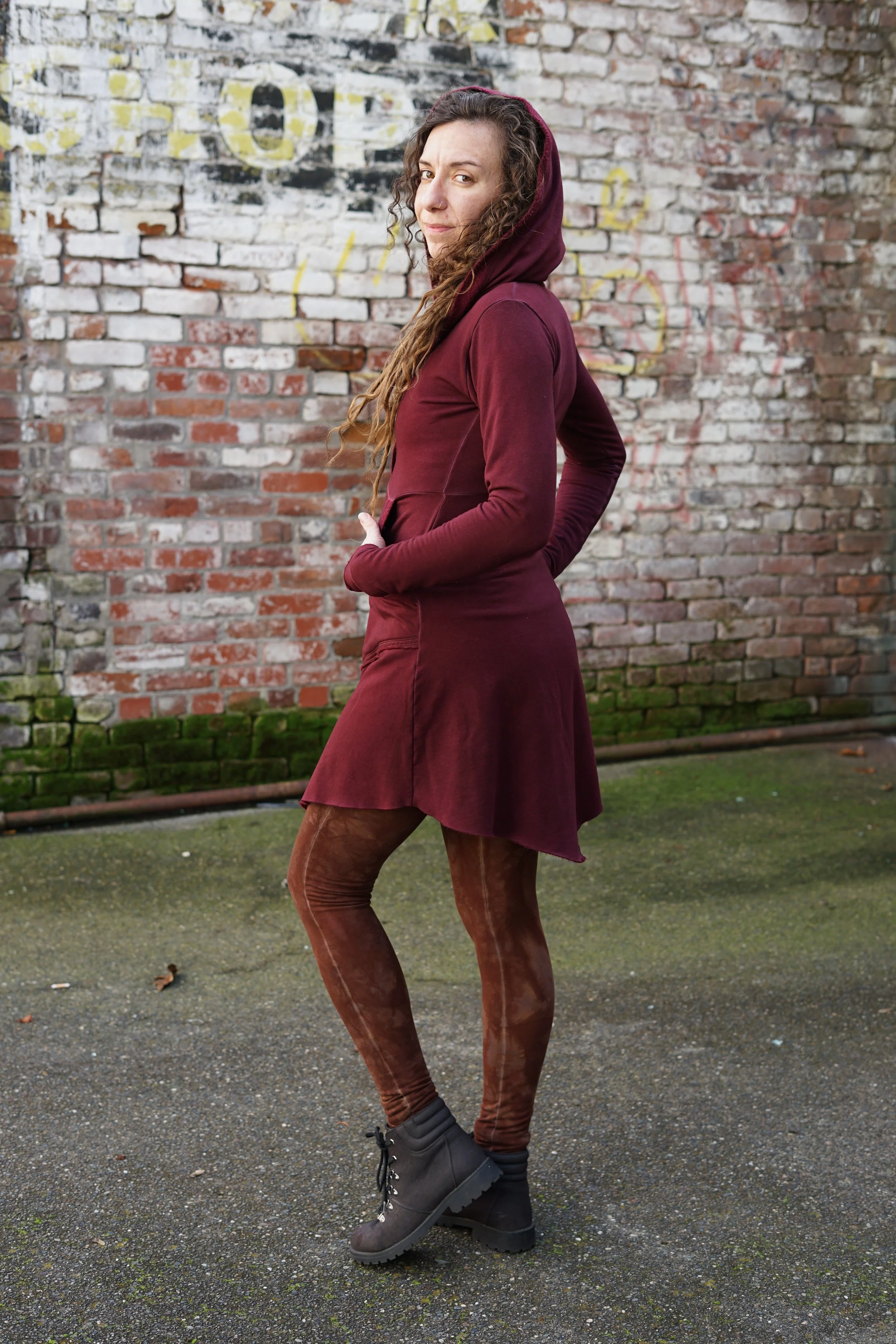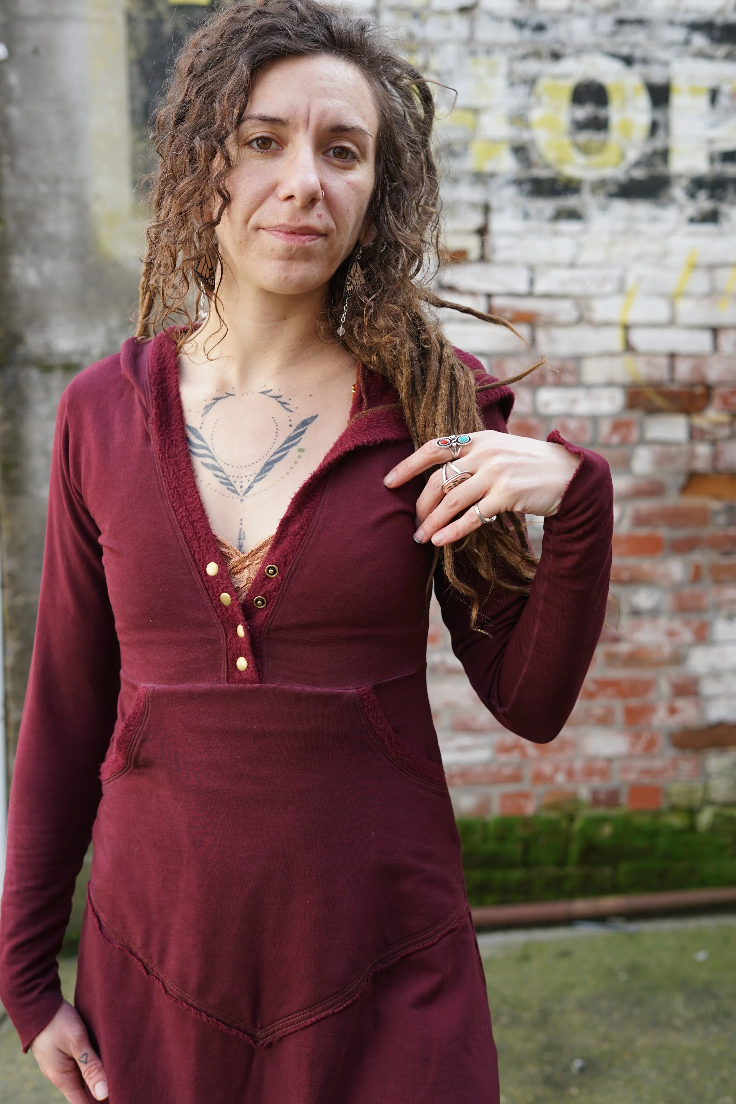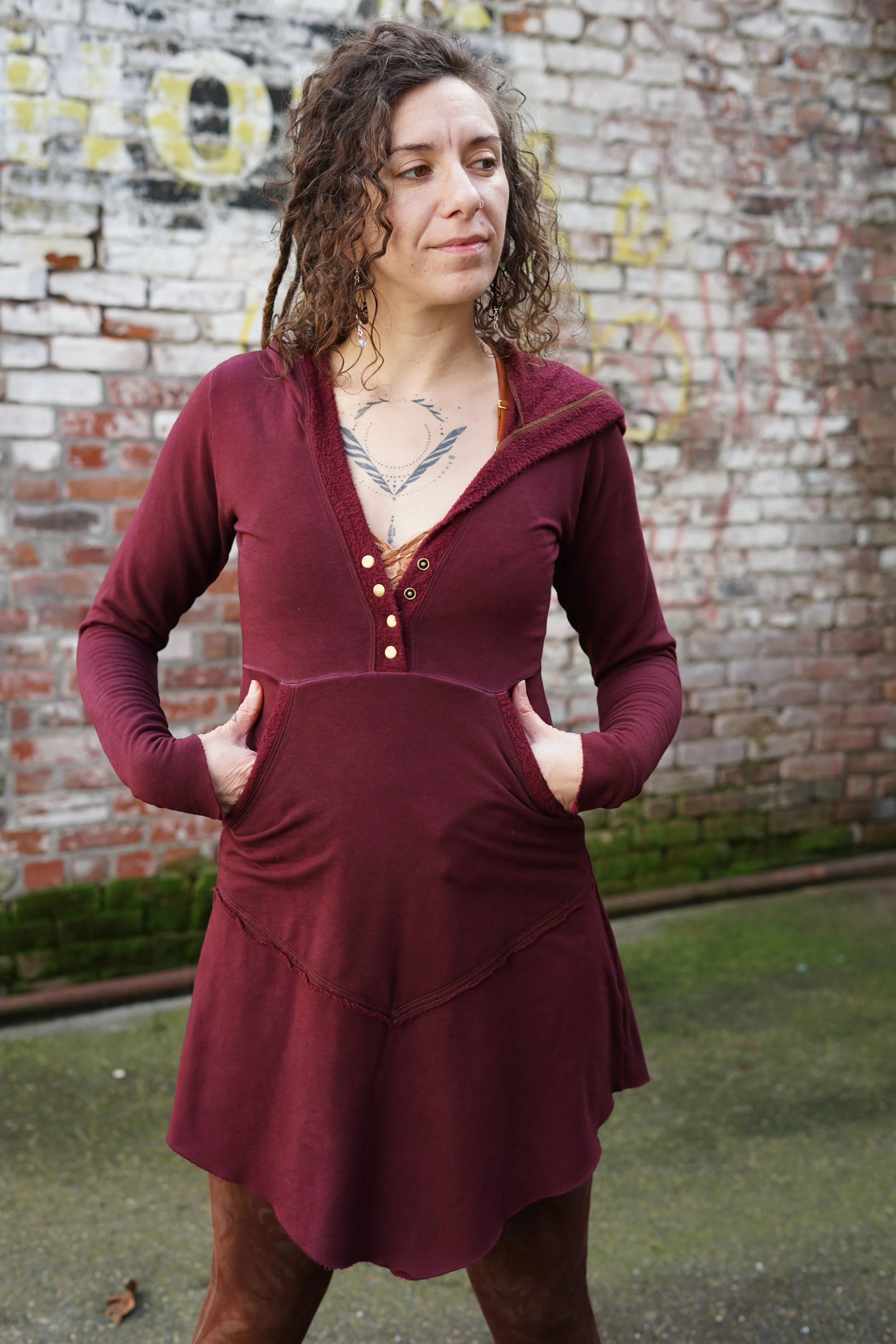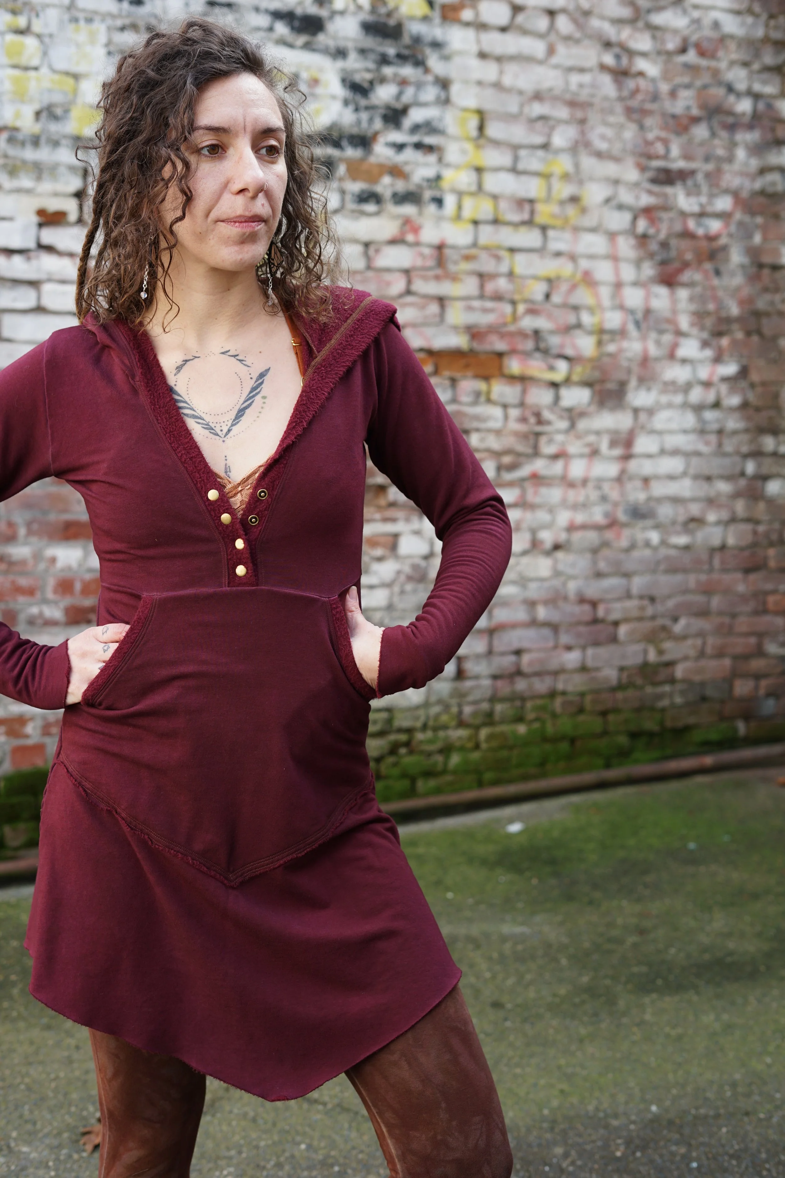 Who doesn’t love a hooded tunic for winter time?? Especially one made of bamboo fleece! Soft on the outside, best cozy feels on the inside. This design is ultra comfort and warmth with style. Our Moonflower tunic has more loosely fitted long sleeves which allows for easier layering over other sleeves and tops. We added snaps at the cuffs if you wish, otherwise opt out for a simpler and cozy look. This design features snap henley front and a center pocket (keeping the hands warm and special items secure!) Perfect for cold weather and gently covers the lower body like a dress. Hand dyed our beautiful solid or marble signature color ways using fiber reactive dyes- and will be your perfect winter time comfy and cozy item!