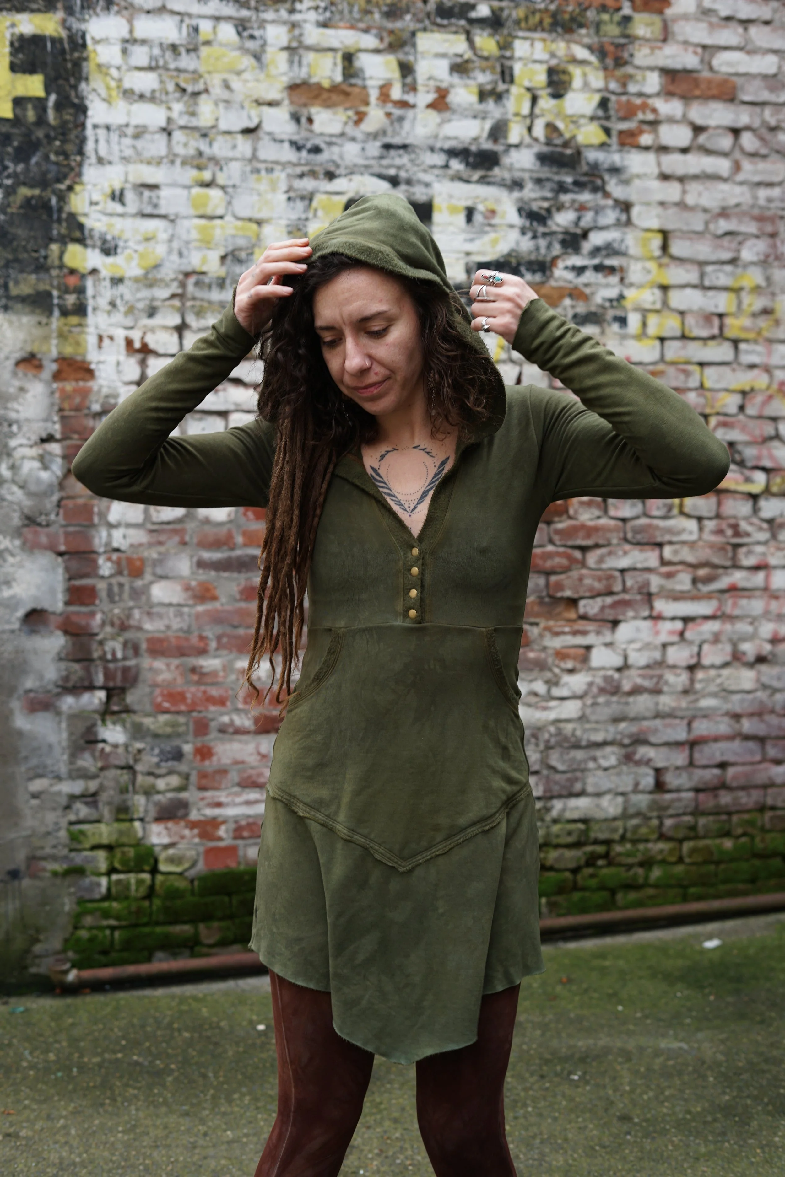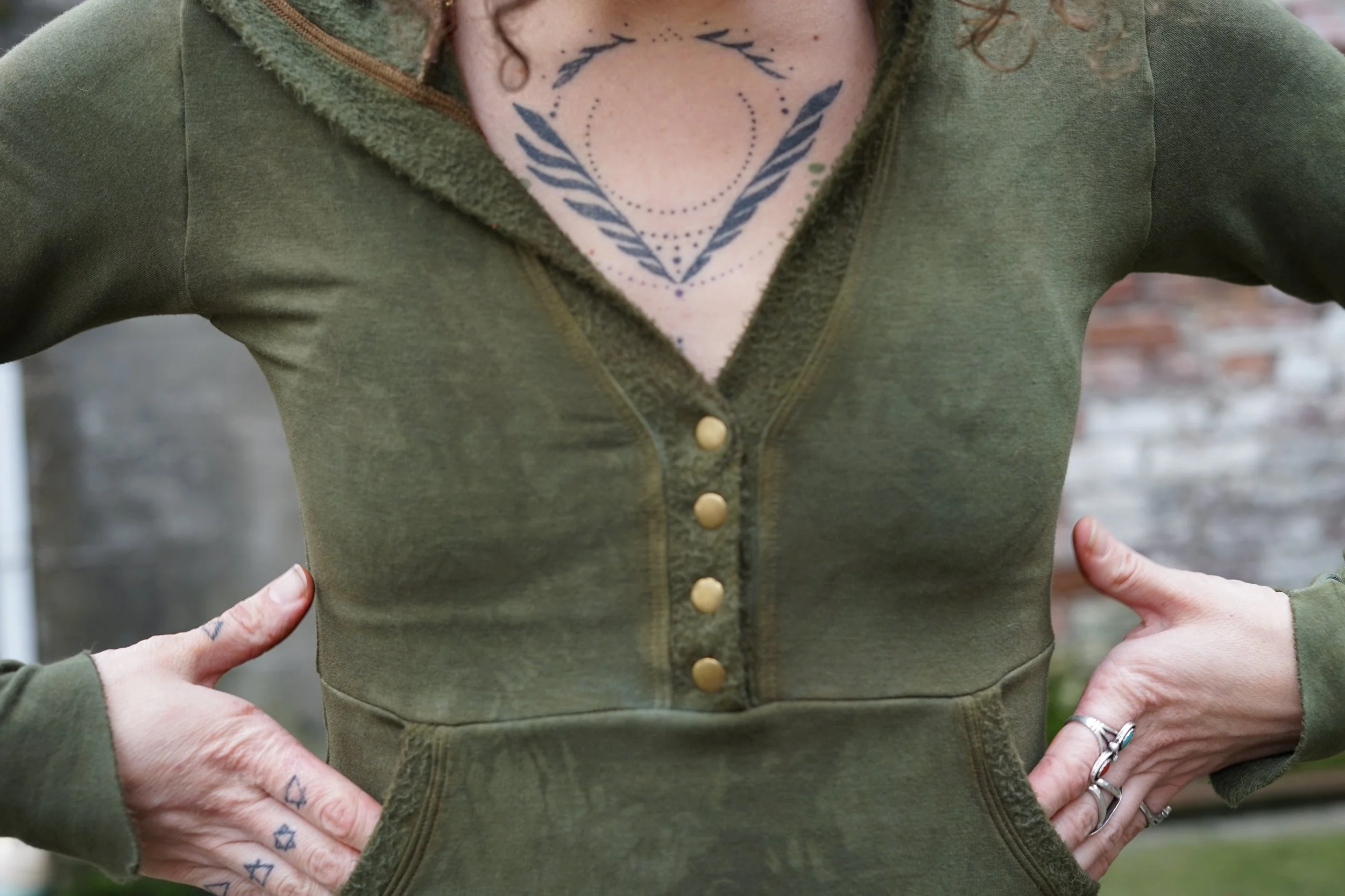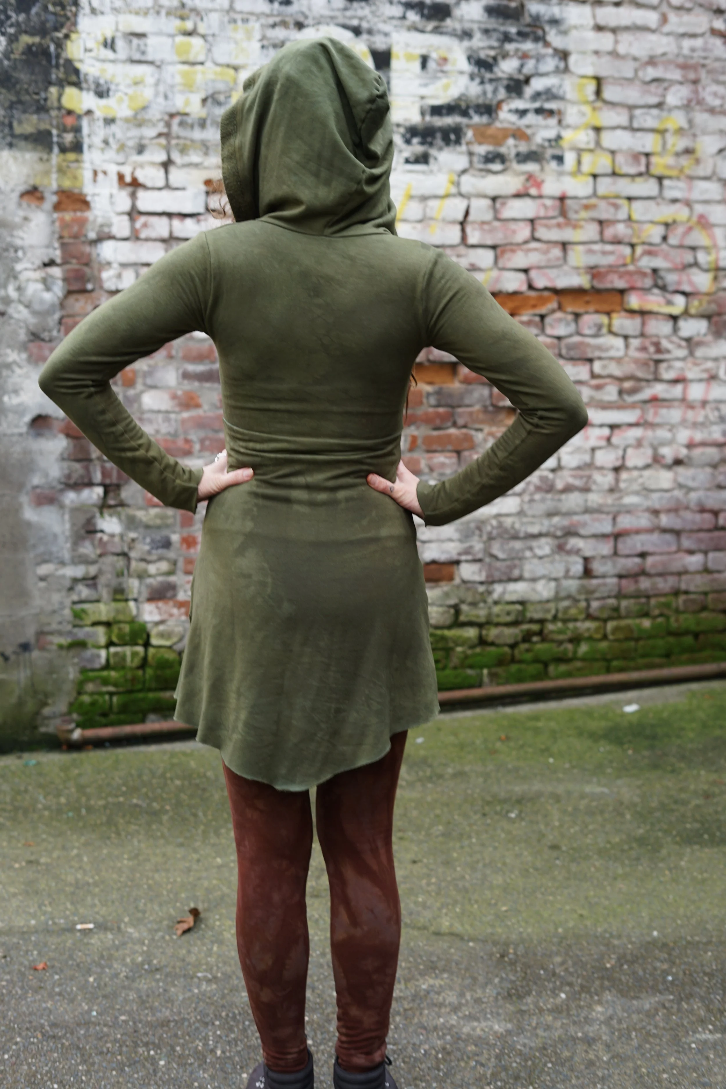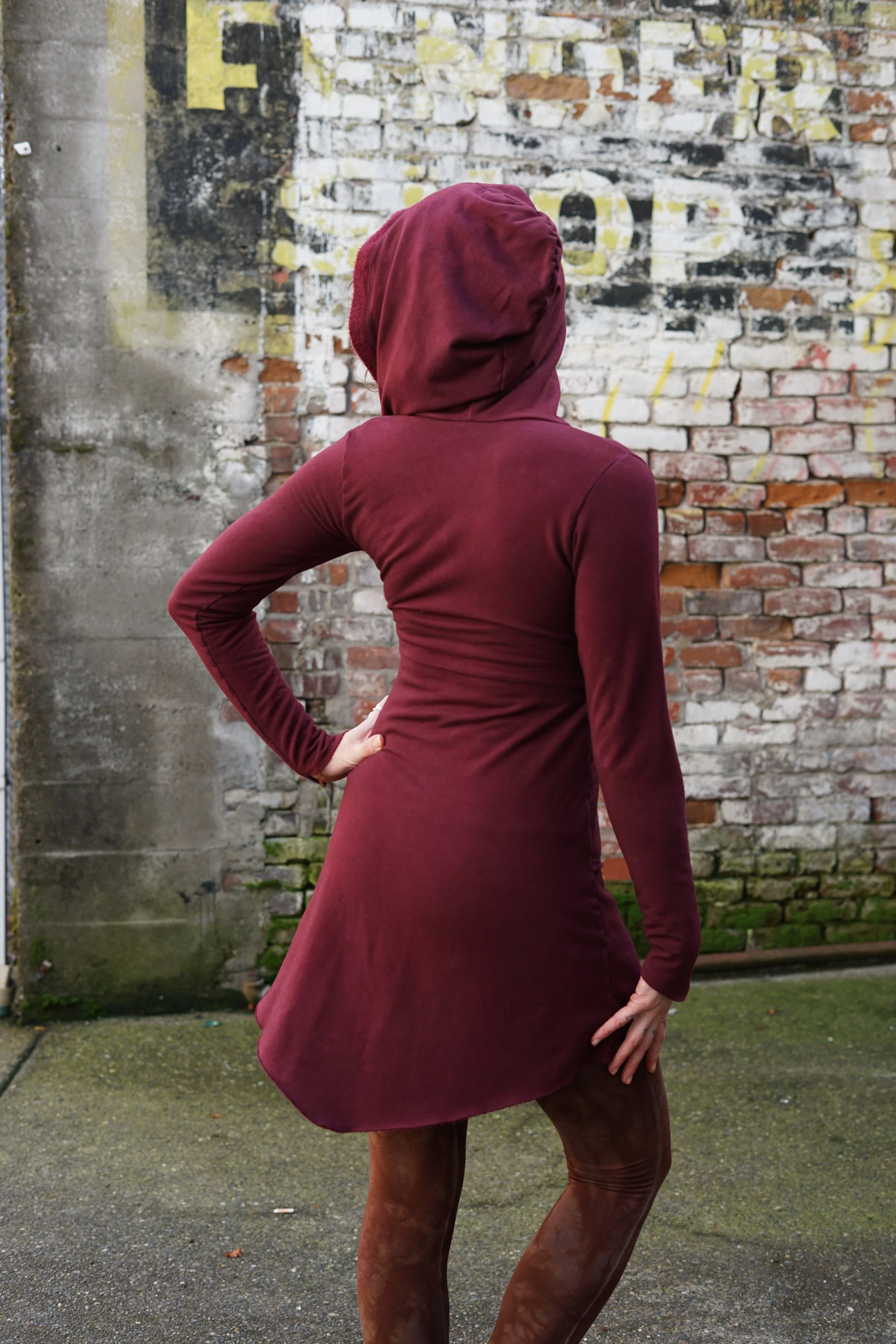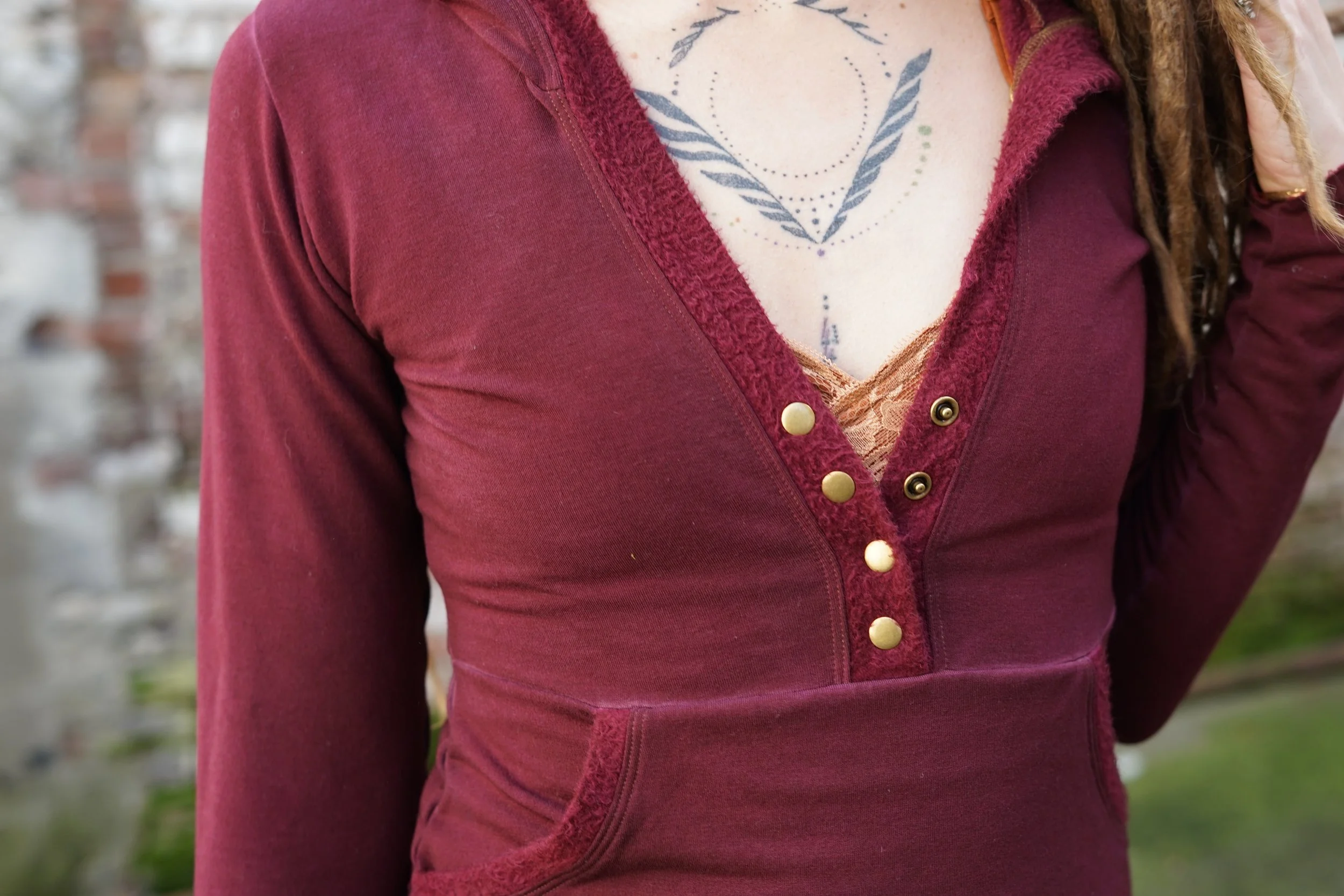 Who doesn’t love a hooded tunic for winter time?? Especially one made of bamboo fleece! Soft on the outside, best cozy feels on the inside. This design is ultra comfort and warmth with style. Our Moonflower tunic has more loosely fitted long sleeves which allows for easier layering over other sleeves and tops. We added snaps at the cuffs if you wish, otherwise opt out for a simpler and cozy look. This design features snap henley front and a center pocket (keeping the hands warm and special items secure!) Perfect for cold weather and gently covers the lower body like a dress. Hand dyed our beautiful solid or marble signature color ways using fiber reactive dyes- and will be your perfect winter time comfy and cozy item!