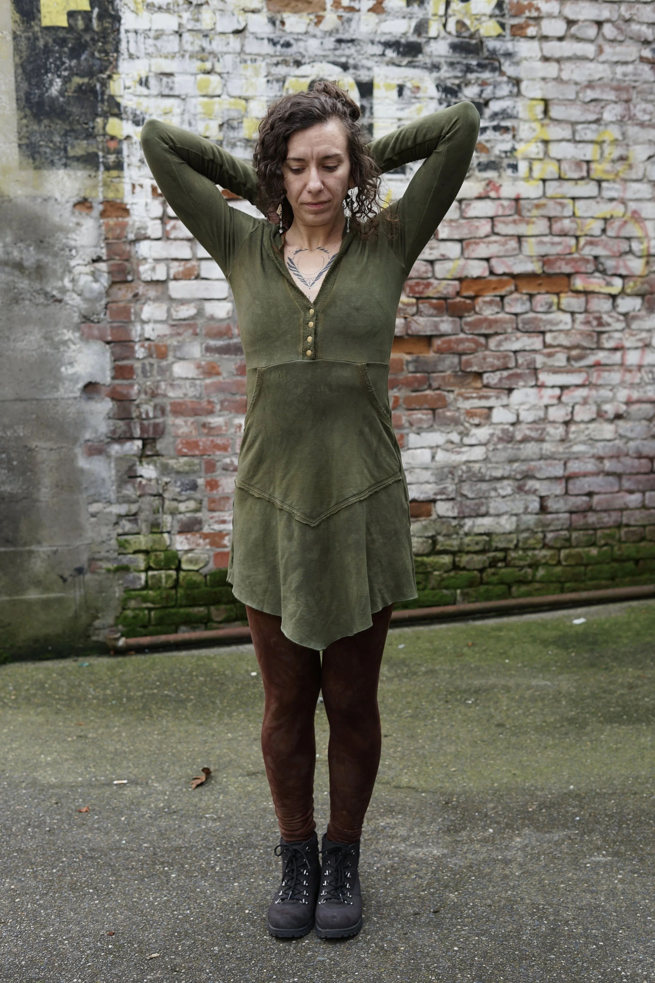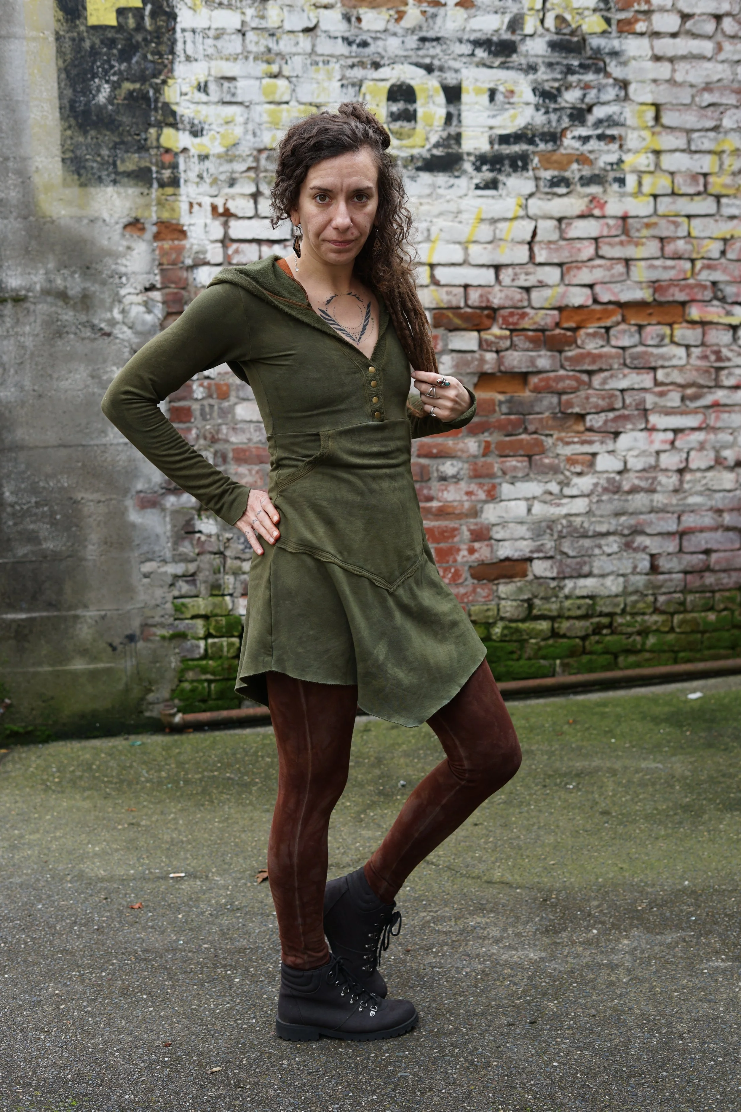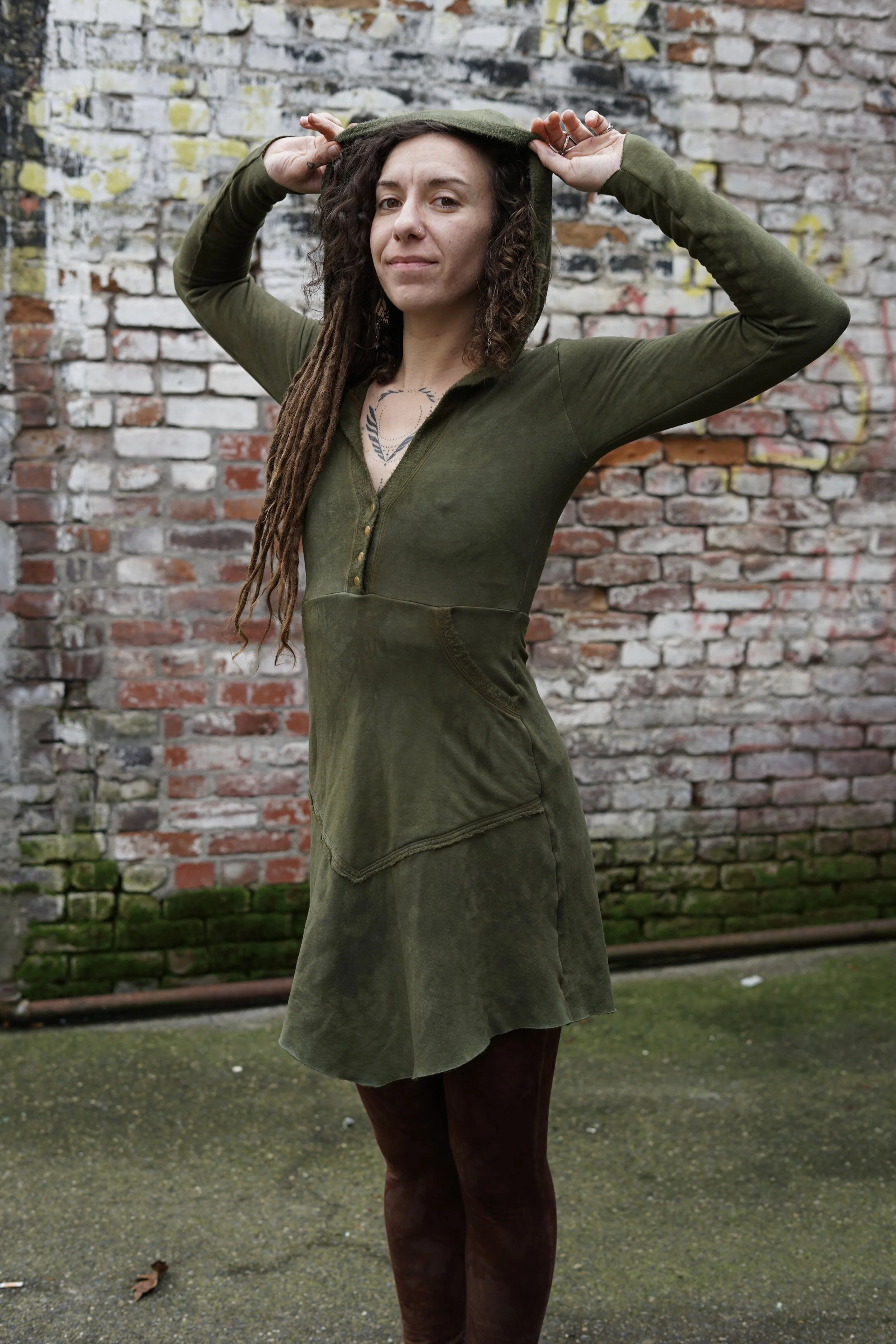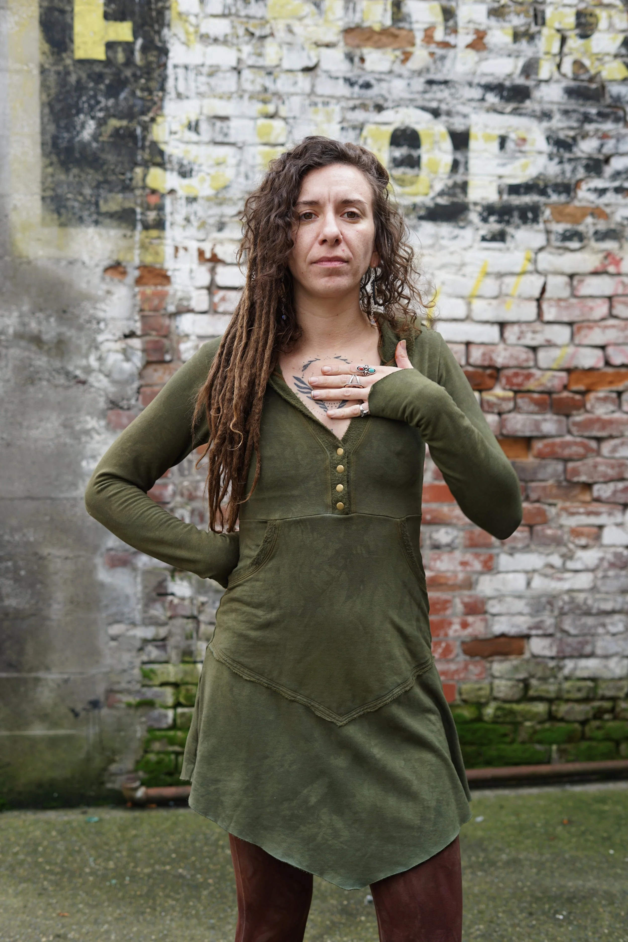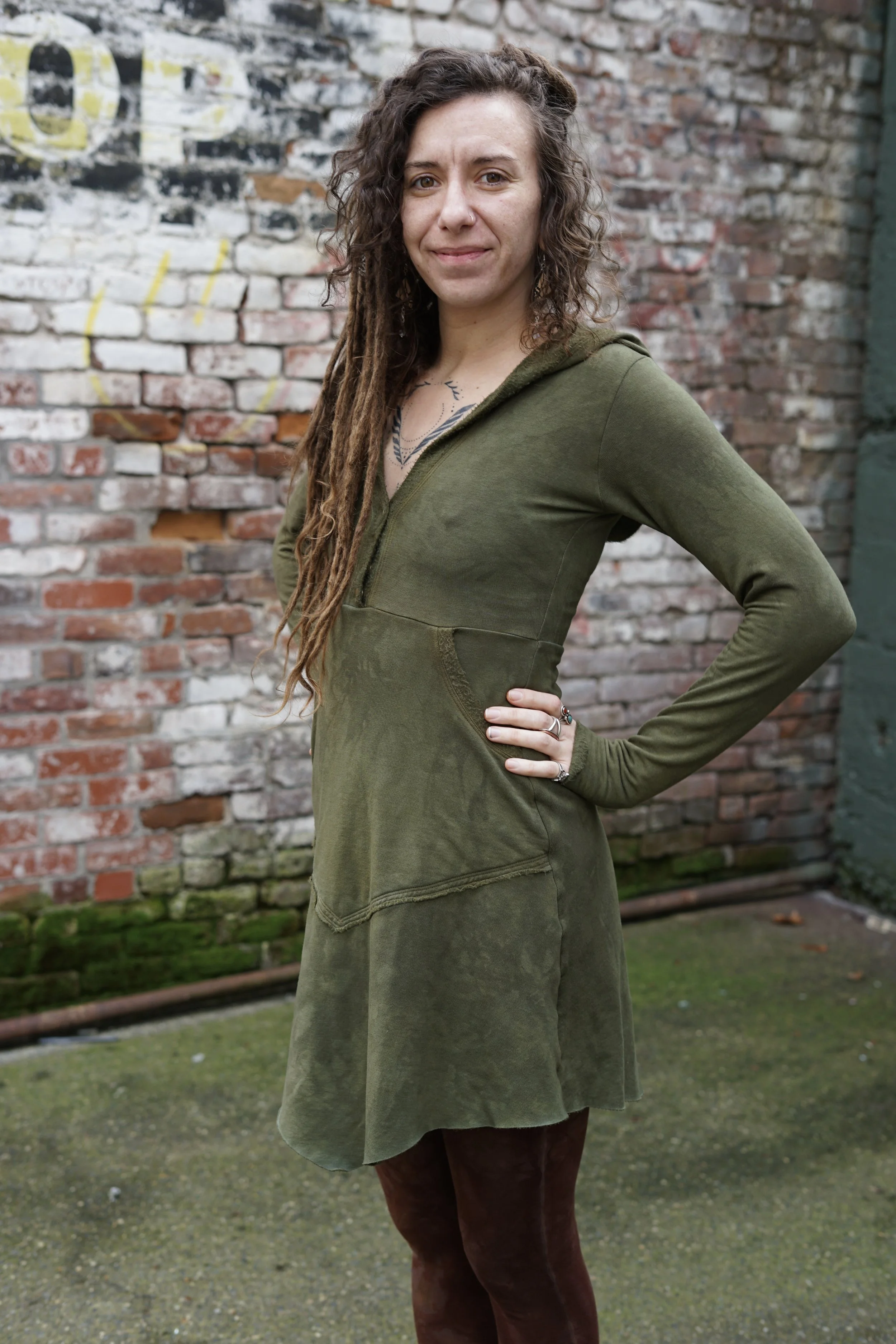 Who doesn’t love a hooded tunic for winter time?? Especially one made of bamboo fleece! Soft on the outside, best cozy feels on the inside. This design is ultra comfort and warmth with style. Our Moonflower tunic has more loosely fitted long sleeves which allows for easier layering over other sleeves and tops. We added snaps at the cuffs if you wish, otherwise opt out for a simpler and cozy look. This design features snap henley front and a center pocket (keeping the hands warm and special items secure!) Perfect for cold weather and gently covers the lower body like a dress. Hand dyed our beautiful solid or marble signature color ways using fiber reactive dyes- and will be your perfect winter time comfy and cozy item!