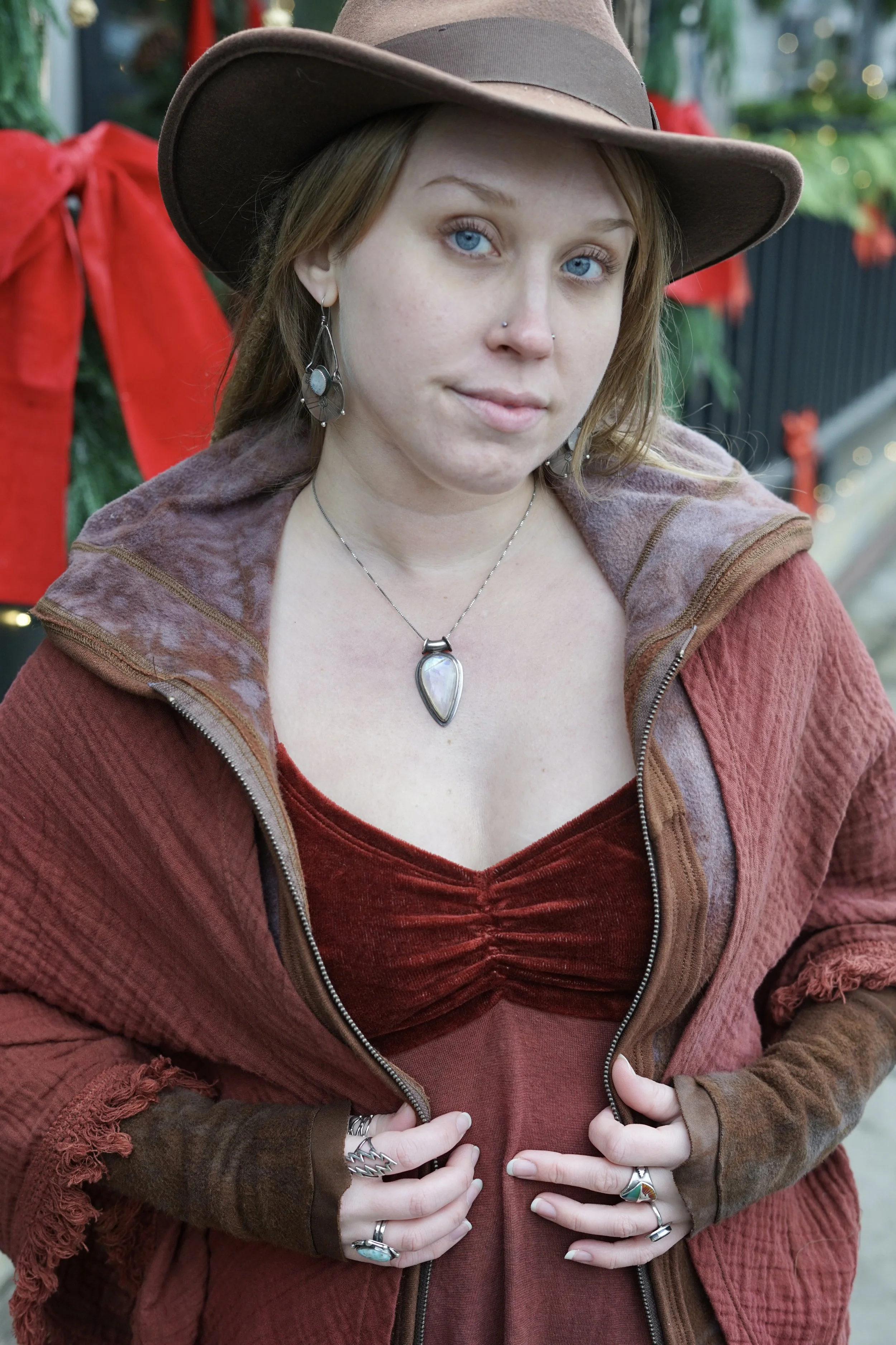 Elegant witch hat made in organic bamboo velvet. Design uses same fabric as our Wind Wizard cloaks and adorned using silver filigree.