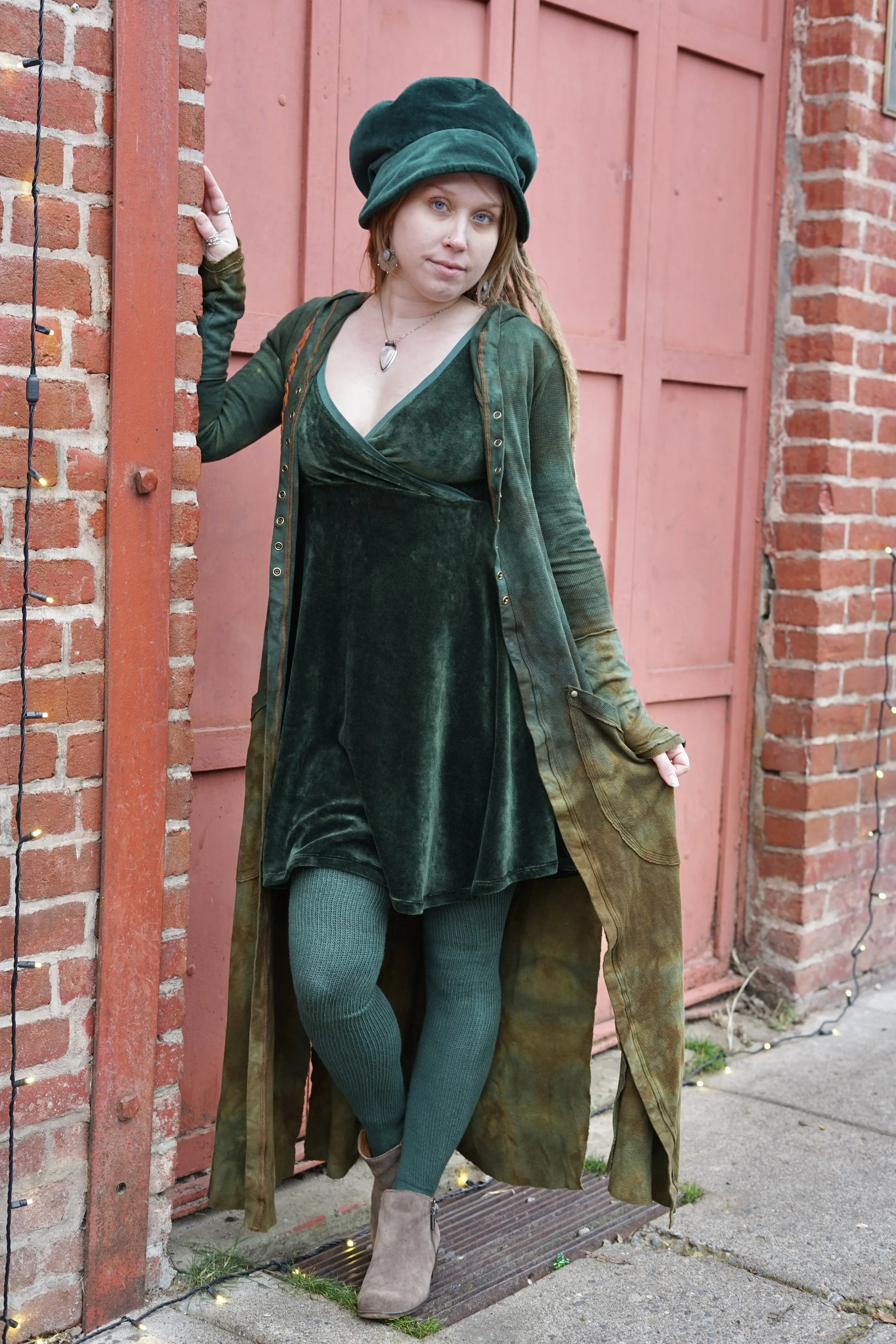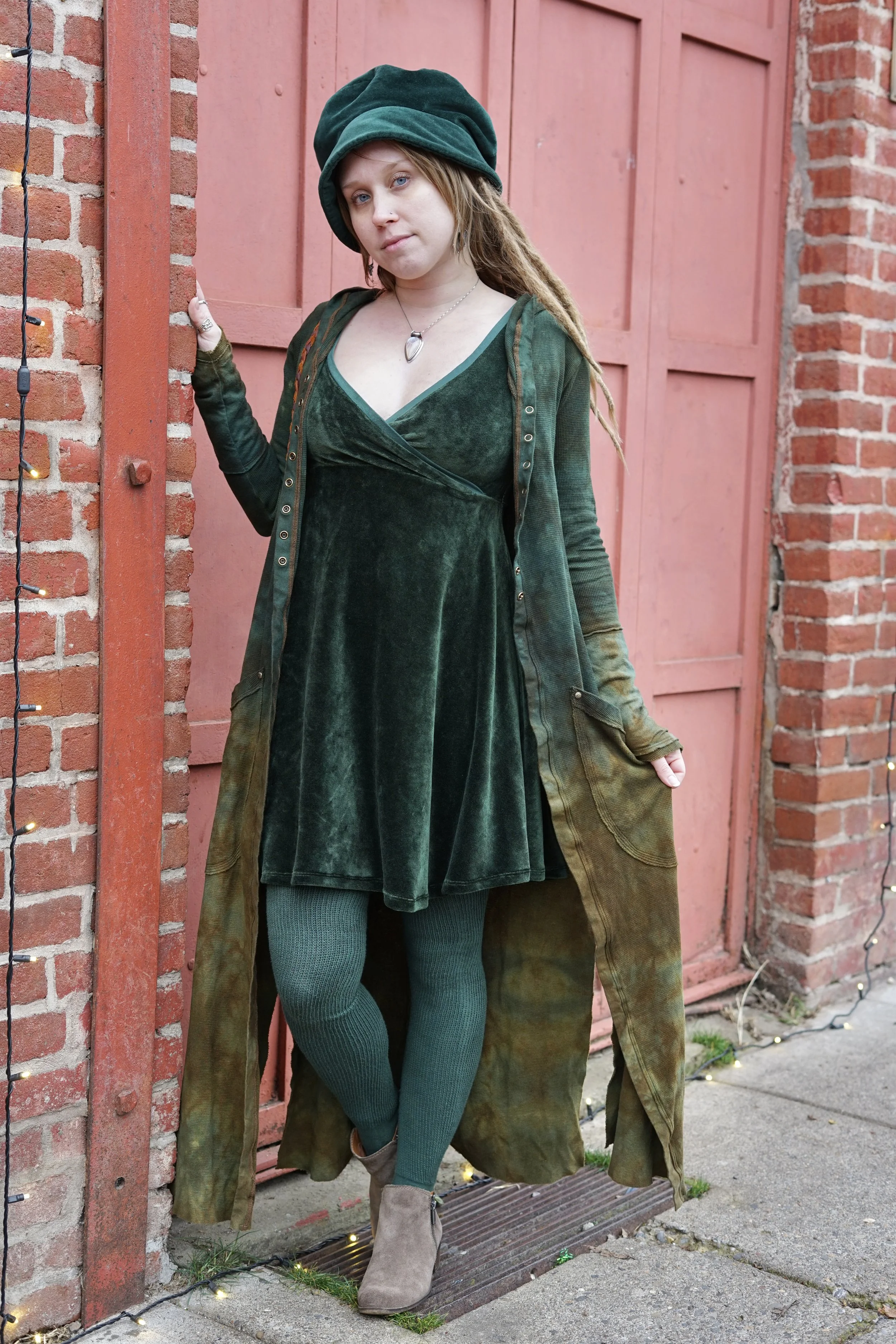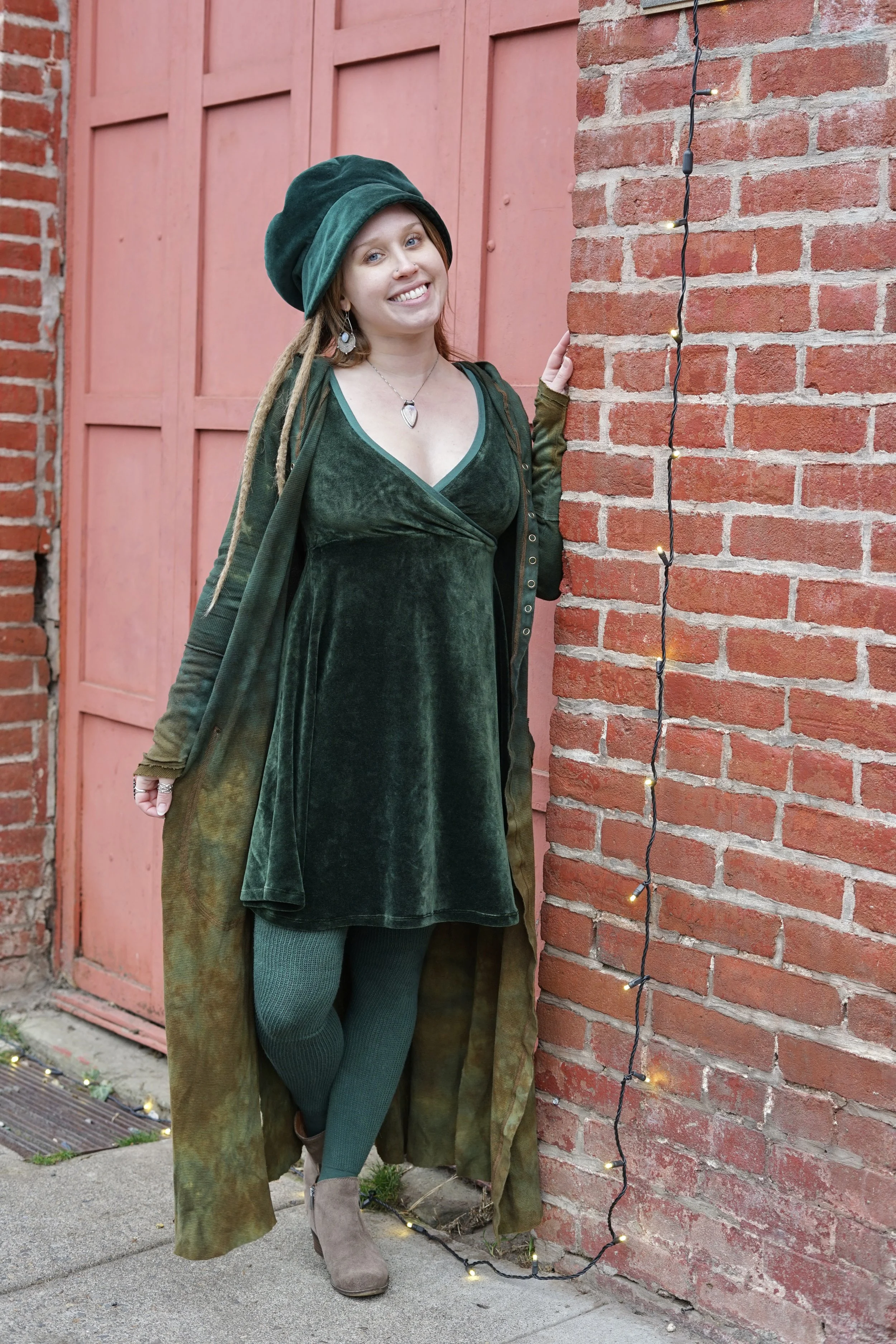 Our Juniper T-shirt thermal gown is designed for everyday wear- it is so comfortable and form fitting- in breathable natural hemp and cotton. Design features T- Shirt sleeves, baby snaps, and side slits. This item can be worn as lounge wear around the house, use it as a nice layering item, or wear it alone for a night out!